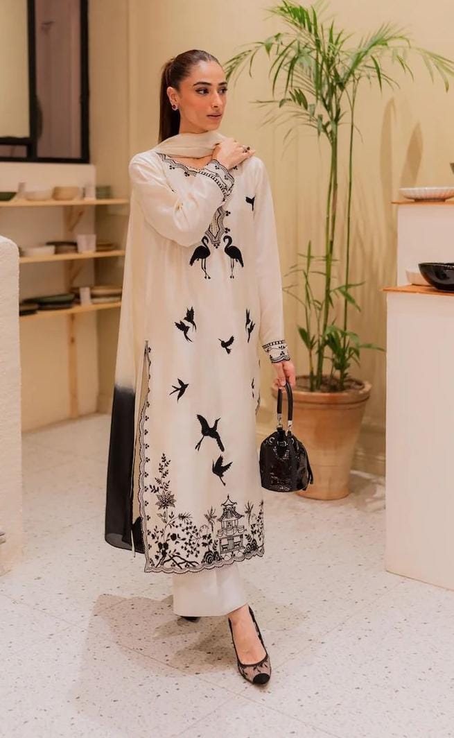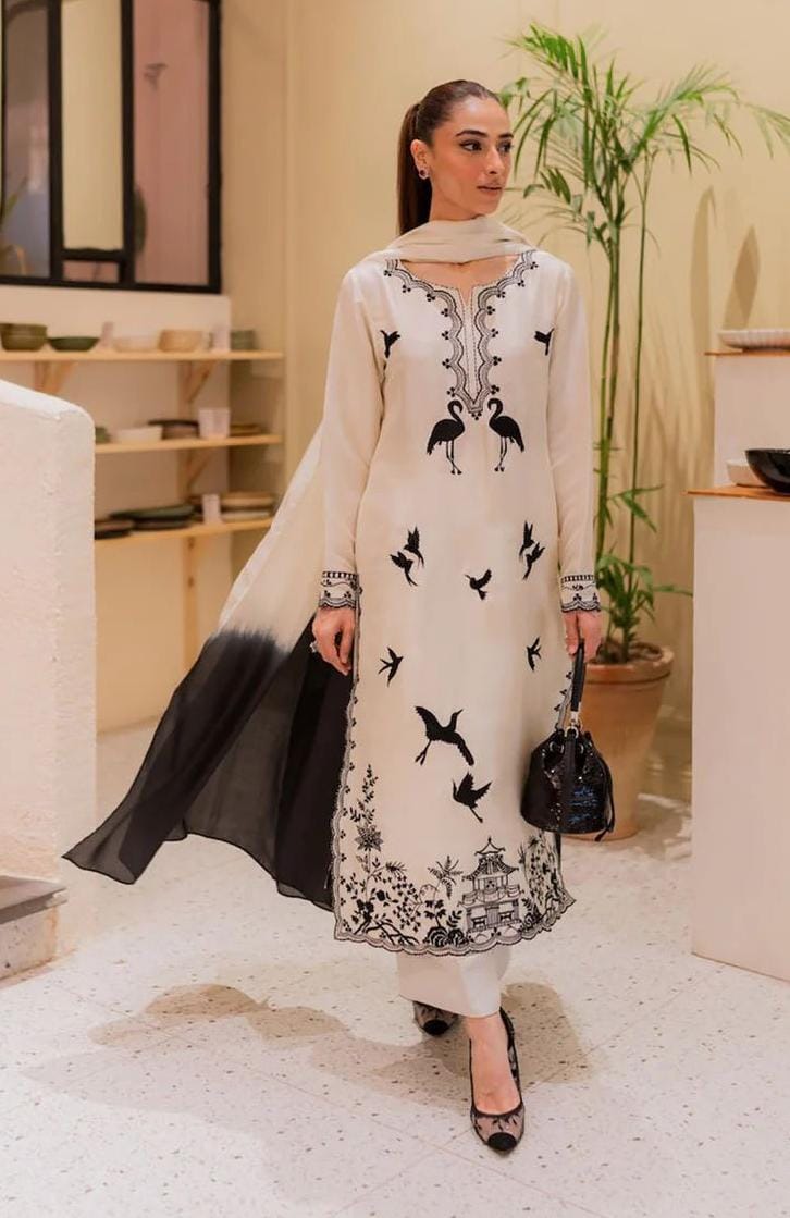 VINTAGE - UNSTITCHED 3PC DHANAK EMBROIDERED SUIT SO16